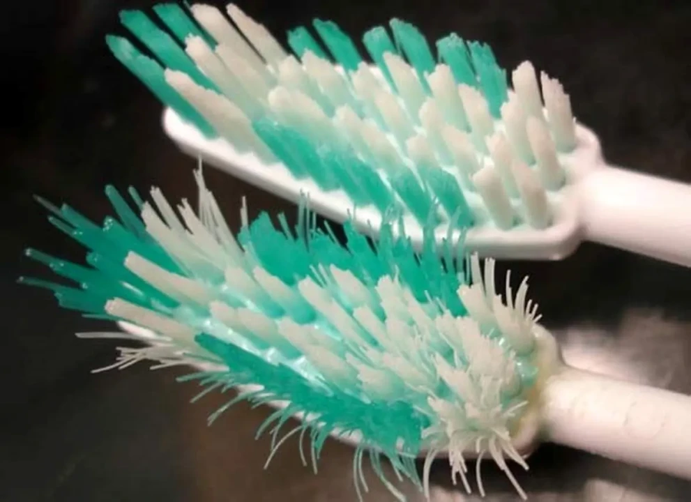 فرسودگی قابل‌مشاهده: موهای خمیده و ساییده کارایی مسواک را از بین می‌برد.